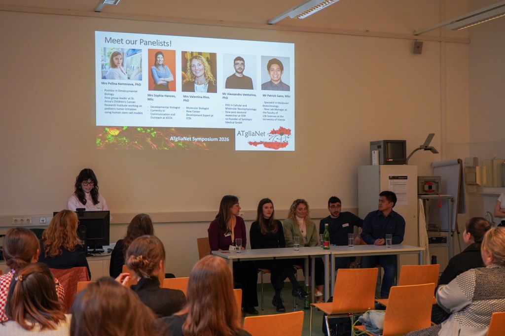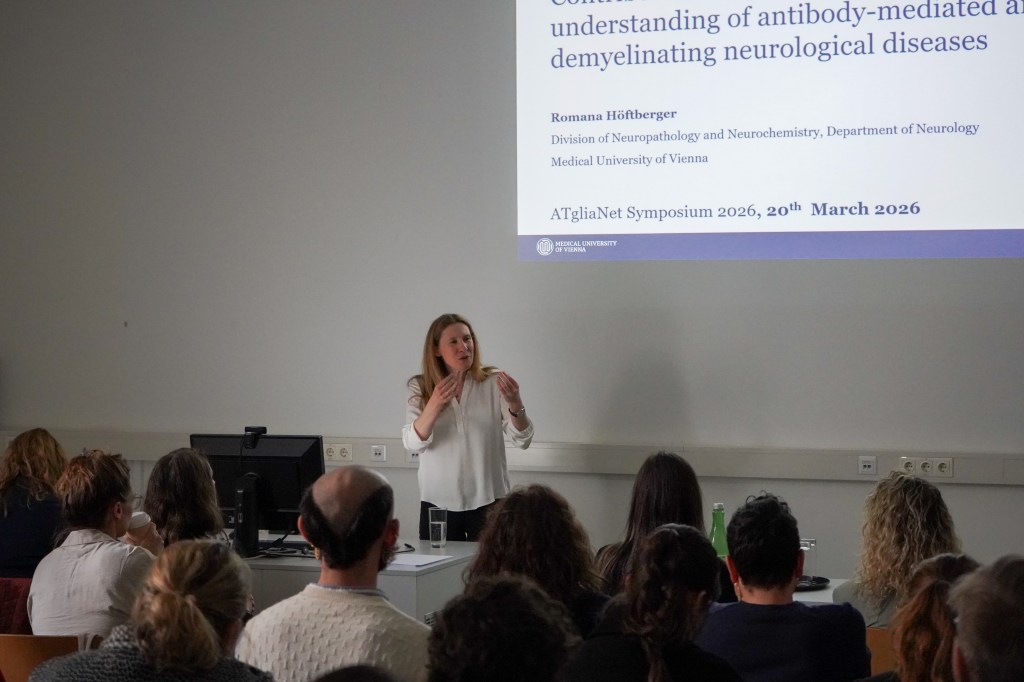 Our second in-person ATgliaNet symposium took place on March 20th, 2026, at the Center for Brain Research. Our keynote speakers, Prof. Leda Dimou from the Medical Faculty at the University of Ulm and Prof. Romana Höftberger from the Department of Neurology at the Medical University of Vienna, gave very inspiring talks on NGN2 cells and antibody-mediated and demyelinating neurological diseases, respectively.